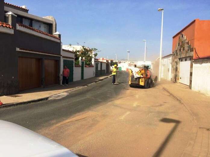 El Ayuntamiento de Telde sigue intentando eliminar las secuelas de las trombas de agua que azotaron el municipio en la tercera semana del mes de octubre pasado. En muchas calles, principalmente de la costa, aún quedan restos del barrizal y las áreas de Servicios y Limpieza Viaria, con el concurso de maquinaria y personal, prosiguen las tareas de adecentamiento de vías y aceras. Este viernes le tocó al sector poblacional de Los Melones, en La Garita. TA ofrece imágenes.