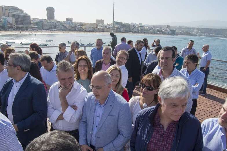 Los candidatos por la Coalición Electoral PSOE-NC al Congreso de los Diputados por la provincia de Las Palmas y al Senado por Gran Canaria, acompañados por todos los cargos públicos del PSOE y NC de Gran Canaria, se hicieron este sábado una foto de familia en la Plaza de La Puntilla de la capital grancanaria. Al acto acudió la alcaldesa de Telde y presidente local de NC, Carmen Hernández. TA ofrece imágenes.