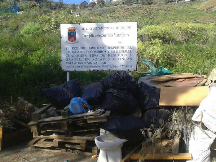 La basura y los desperdicios se acumulan en un camino rural de Hoya Manrique, en el Valle de los Nueves. Un punto en donde hasta hace 15 días se ubicaban varios contenedores de recogida que han desaparecido desde entonces. Palets, escombros, restos de poda, muebles, un sanitario y hasta un colchón se amontonan precisamente junto a un cartel en el que se advierte de la prohibición de depositar desperdicios.
