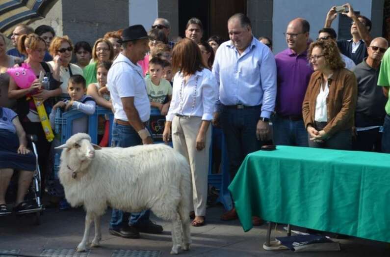 Luis González le muestra su oveja Ussa a la alcaldesa Carmen Hernández, en las pasadas fiestas de Los Llanos (Foto TA) Luis González le muestra su oveja Ussa a la alcaldesa Carmen Hernández, en las pasadas fiestas de Los Llanos (Foto TA)