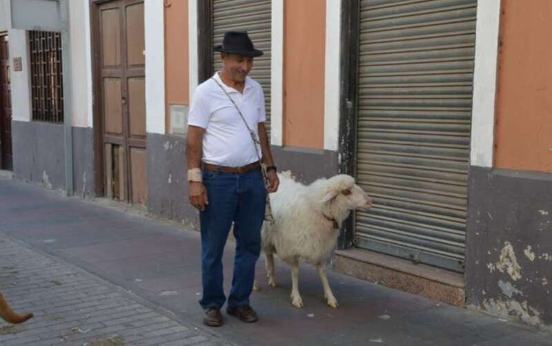 Luis González no se acompaña de un perro en sus paseos por la ciudad. Lo hace con una oveja, a la que puso el nombre de Ussa. Va con él a todas partes, incluso cuando va de caminata por la costa de Telde. El primer vínculo entre ambos fue el biberón que González le dio cuando nació hace algo más de un año casi muerta y sin fuerzas para mamar de su madre. En el desfile de ganado de las fiestas de San Gregorio, Ussa paseó junto a su propietario, que se la mostró a la alcaldesa Carmen Hernández. Entonces fue la nota curiosa de la jornada. TA ofrece imágenes.