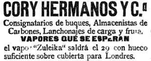 La imagen del Zuleika resultaba familiar en el Puerto de la Luz donde solía atracar con frecuencia en sus viajes para proveerse de carbón. Su última llegada de las dos que había hecho en 1920 se había producido el 1 de Julio. En un comunicado a los exportadores, a principios de Julio de 1920, sus consignatarios Cory Hermanos y Cª, hacen saber la llegada para el día 29 del “magnífico” vapor Zuleika con hueco suficiente sobre cubierta con destino a Londres. Este anuncio se repetiría de forma reiterativa por la prensa de Las Palmas durante varios meses desde Junio hasta su llegada y posterior accidente. Los vapores de la compañía del Zuleika eran conocidos por los de la “Z”.