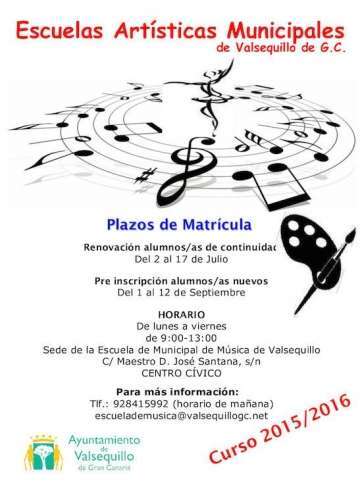 Valsequillo.- Hasta el próximo 17 de julio permanecerá abierto el plazo de renovación de matrícula para los alumnos que quieran seguir con su formación en las Escuelas Artísticas de Valsequillo, que actualmente conforman los diferentes departamentos municipales de música, danza, pintura y folklore.