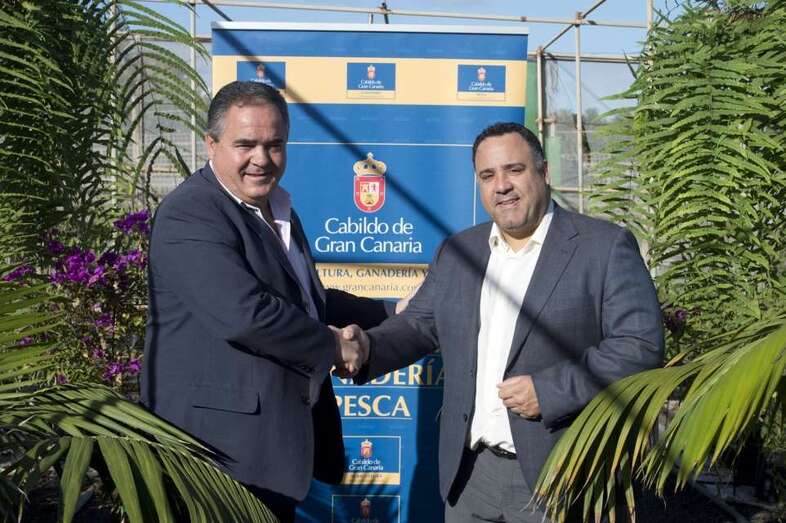 El consejero Francisco Santana cedió, en esta ocasión, al concejal de Parques y Jardines de Telde, Agustín Pérez, una amplia partida de plantas de ornamentación, entre las que pueden distinguirse dragos, buganvillas y crotos.