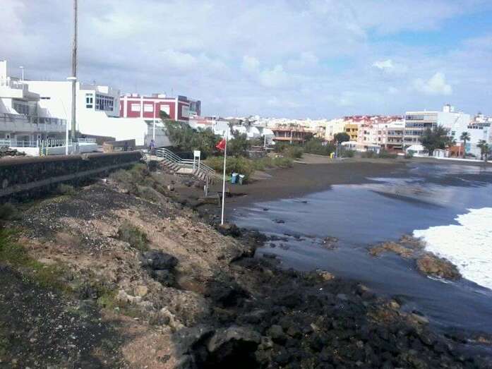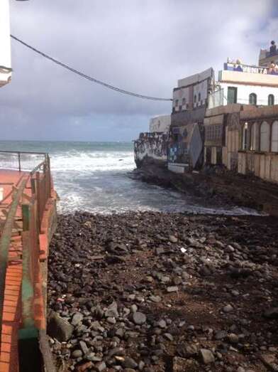 Telde.- El fuerte oleaje que desde hace unos días afecta al litoral de Canarias ha provocado daños en la playa de Melenara. La fuerza del embate de las olas ha roto una barandilla metálica que da al muelle, ha provocado desprendimientos de piedras en el acantilado de Taliartey ha creado un escalón de un metro de altura en la arena.