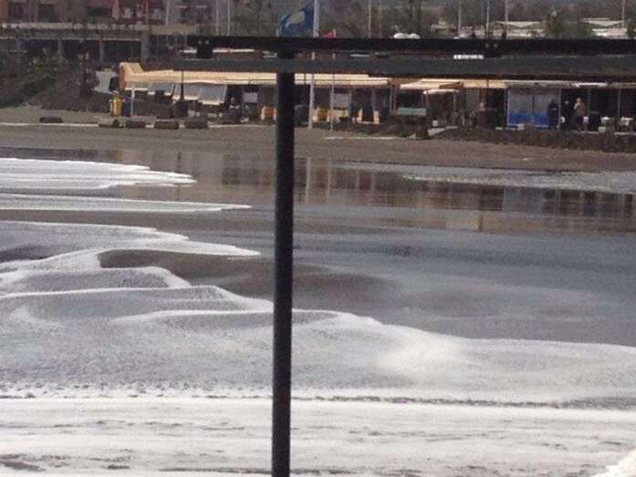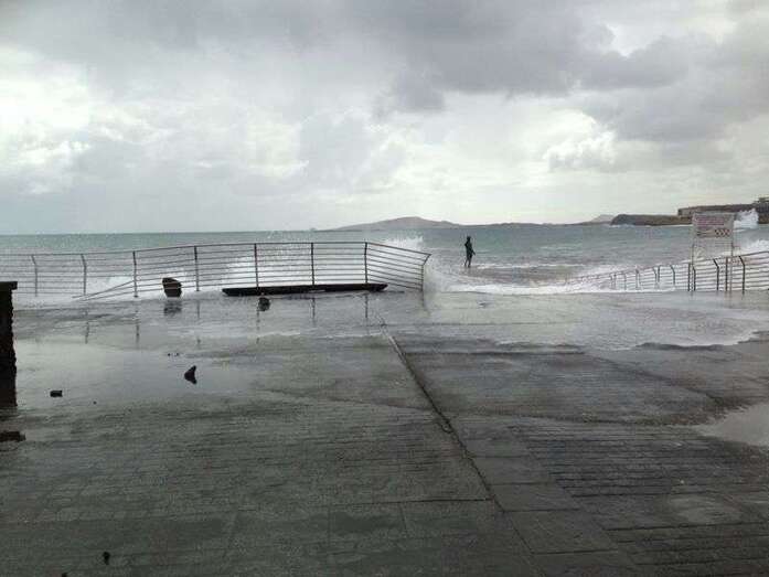 El fuerte oleaje provoca destrozos en la playa de Melenara