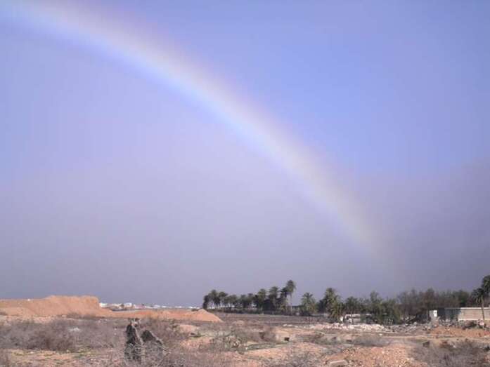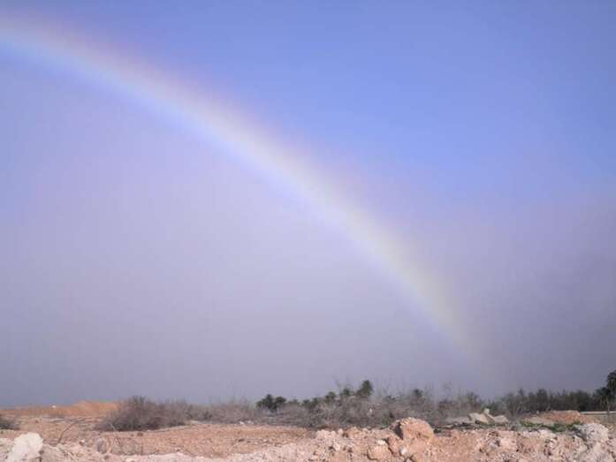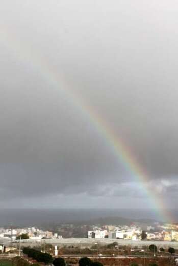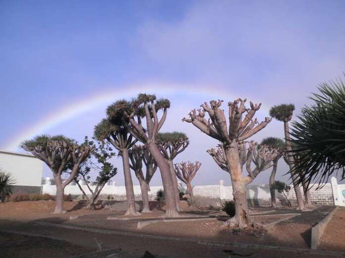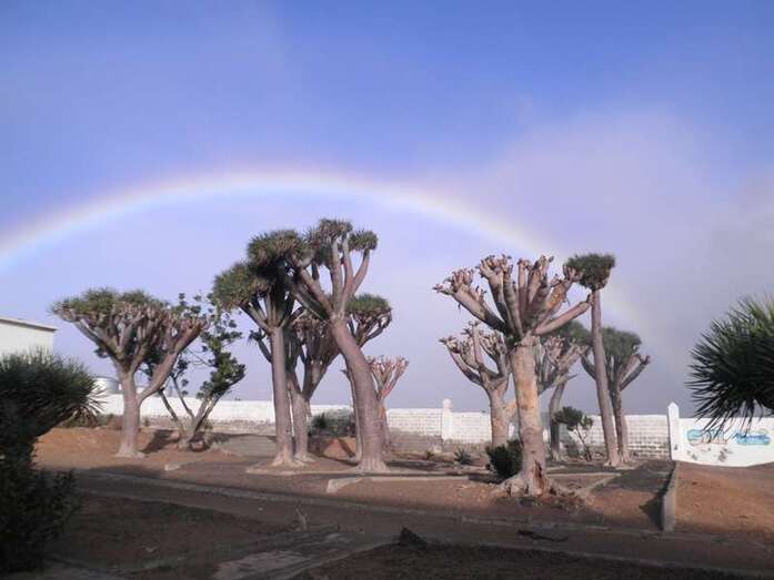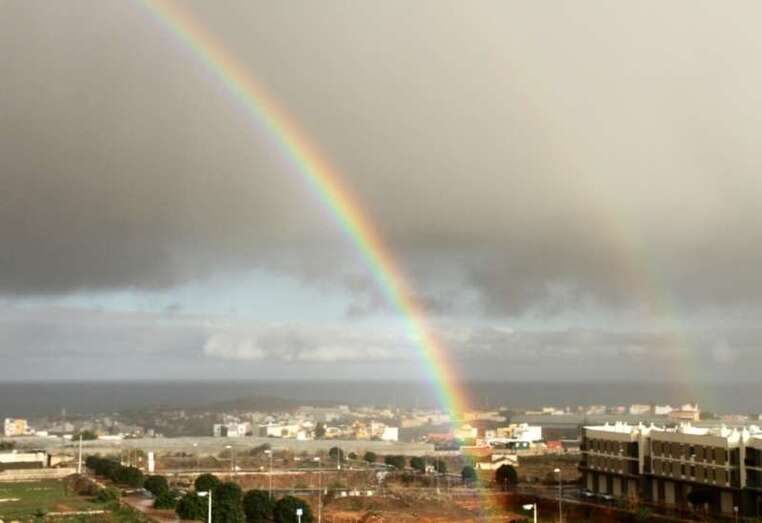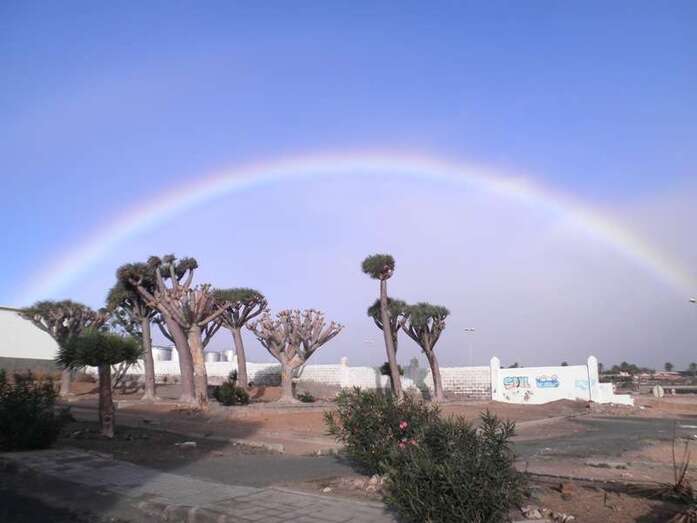 Arco iris sobre el dragonal de Salinetas y el casco de Telde