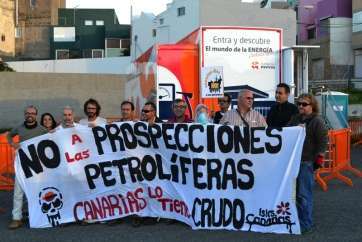 Portando una pancarta en la que se podía leer: “Petróleo no, renovables si. No a las prospecciones petrolíferas. Canarias lo tiene crudo”, los manifestantes explicaron que la extracción de crudo en las proximidades del Archipiélago suponen una “evidente privatización de los beneficios y colectivización de los riesgos”, poniendo el peligro el sector turístico, el medioambiente y la calidad de vida de las Islas.