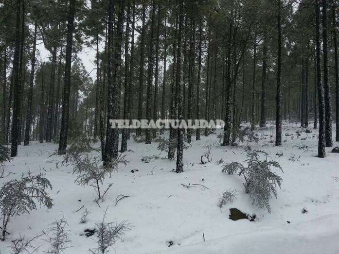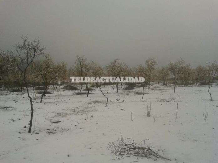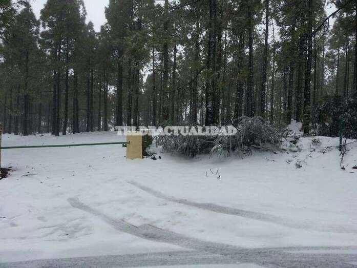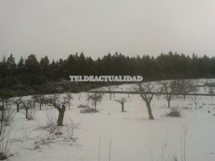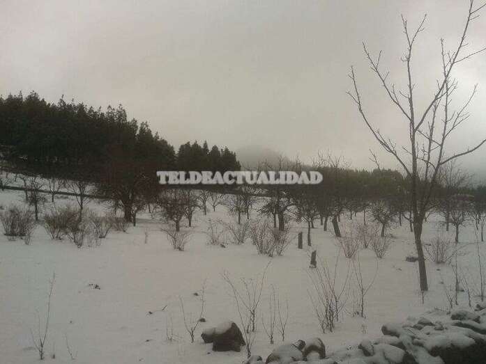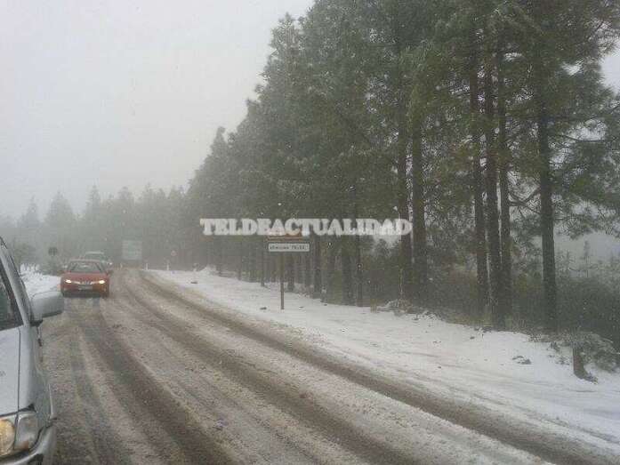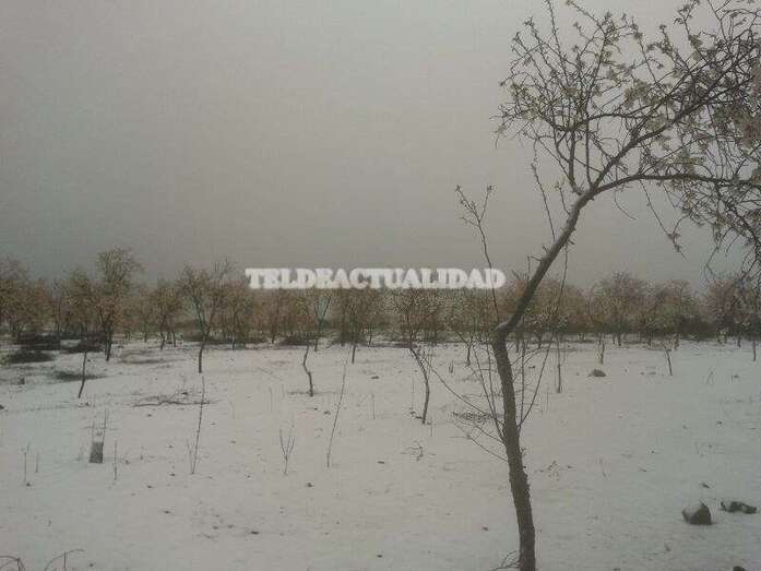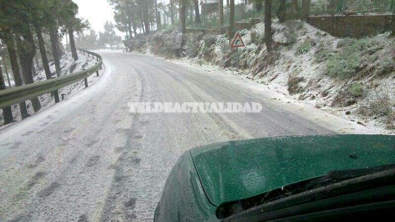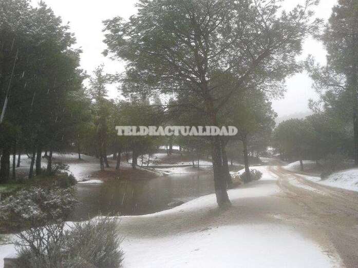 Telde.- La nieve ha hecho acto de presencia en la mañana de este sábado en las cumbres grancanarias. En el Parador de Tejeda el manto blanco se iba formando poco a poco y en cotas superiores aún más. En la zona alta de Telde, la nieve llega hasta la Caldera de los Marteles y en Cazadores ha caido una fuerte granizada. En el resto del municipio no ha parado de llover durante toda la mañana.