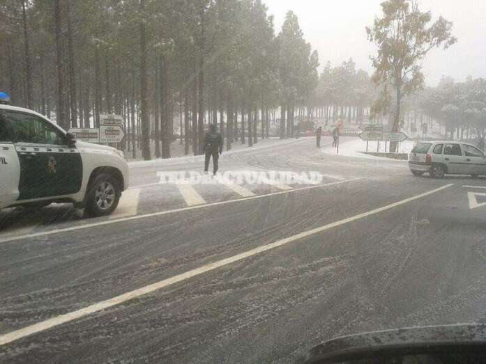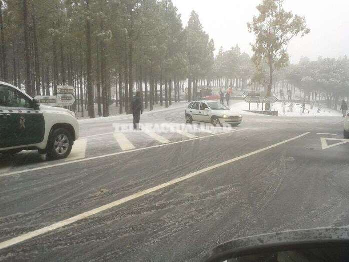 La Guardia Civil de Tráfico procedió al filo de las 12.30 horas al cierre de la carretera de acceso a la cumbre por Cazadores, donde a esa hora los termómetros registraban una temperatura de sólo 4 grados, según testimonio remitido desde el lugar por el reportero gráfico Antonio Alí (Ampliación a las 12.45 horas).