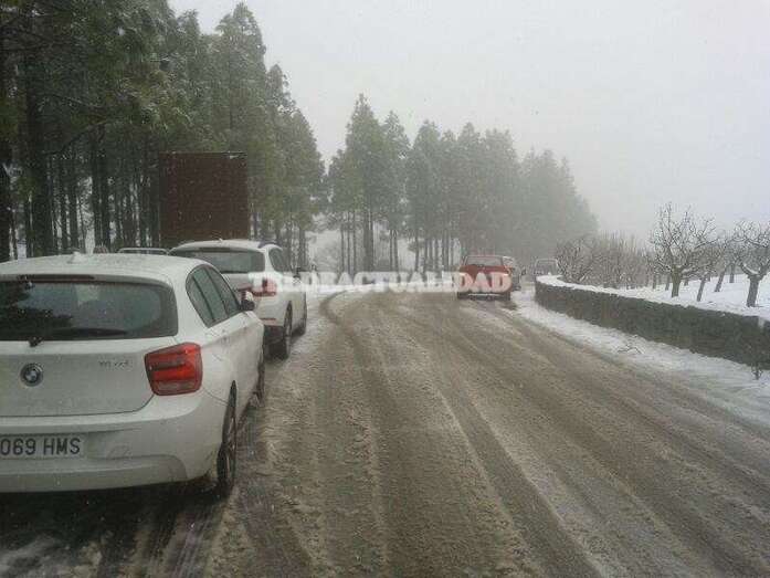 Más intensa ha sido la nevada en las cumbres de La Palma y en Tenerife, con problemas para el acceso por carretera a las cotas más altas. Se recomienda extremar la prudencia si se circula por carretera. Las lluvias son generalizadas en las Islas y se espera que aumente la intensidad a medida que vaya transcurriendo el día, según informa Canarias7.