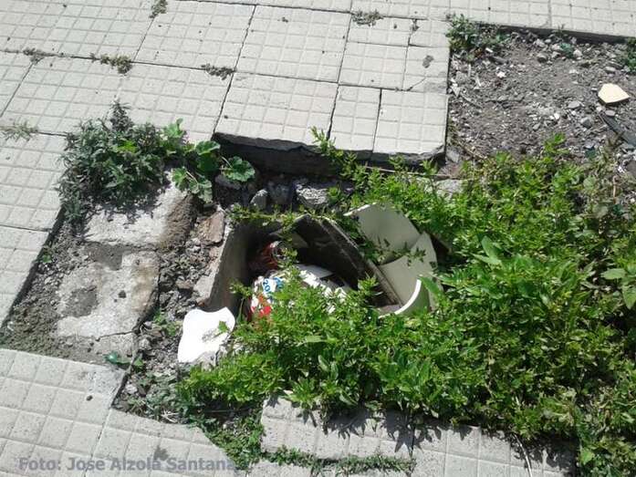 Ni que decir del abandono de los jardines, asignatura pendiente y generalizada. Y esto no es todo, pues sus despistes, traerá costosas consecuencias. Como se puede observar, el peligro al que se exponen tanto viandantes como vehículos es mayúsculo, dada la falta en toda la zona de las tapas de arquetas y rejillas-desagües de aguas pluviales, por lo que, de ocurrir alguna desgracia accidental y esta pueda dar lugar a denuncia por negligencia, no cabe la menor duda que los gastos, como siempre, serán por cuenta de las arcas municipales, o sea, de los contribuyentes.