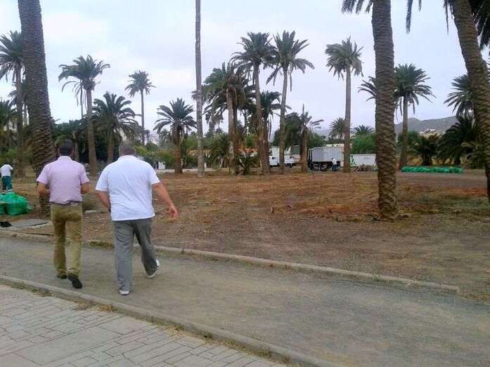 Para devolver el verdor y limpieza a este enclave no se escatimaron en recursos humanos ni materiales. FCC, la concesionaria del servicio de mantenimiento de las áreas verdes de Telde, puso en marcha además de los operarios hasta 3 desbrozadoras, 4 motosierras, cestas elevadoras para podar palmeras y una fumigadora, entre otras máquinas.