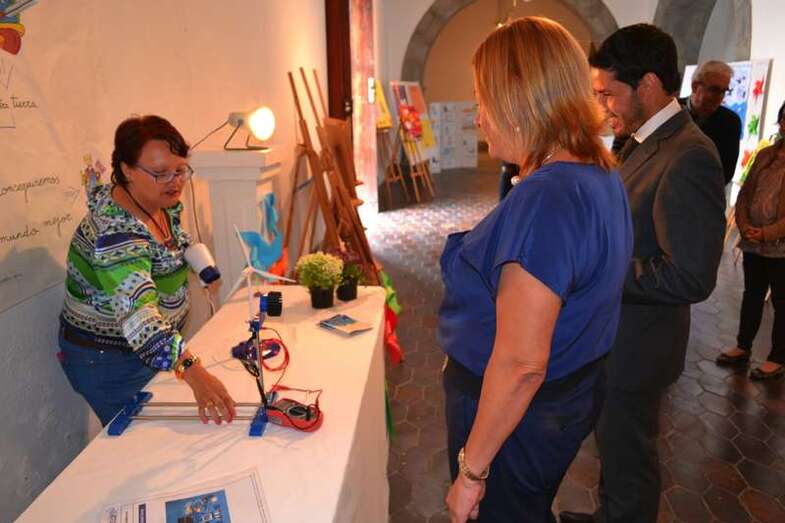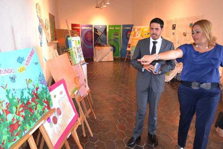 Antes de la rueda de prensa, ambos mandatarios pudieron observar los trabajos realizados por diferentes centros escolares de Telde para el II concurso de dibujo y pintura, que ganó el CEIP María Suárez de Fiol.