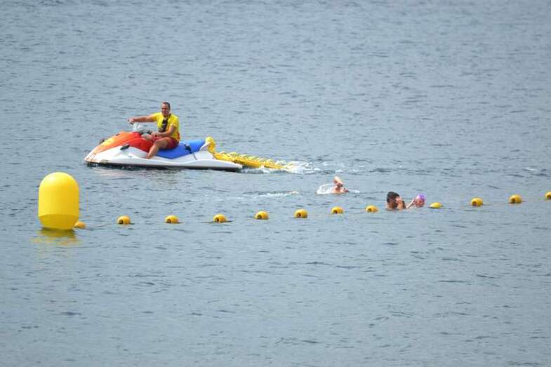 Telde.- Casi un centenar de deportistas de todas las edades estrenó este sábado en la costa de Telde el primer canal de natación en aguas abiertas de Canarias y el segundo de España, una iniciativa de la Concejalía de Playas patrocinada por Aguas de Telde, empresa concesionaria del servicio de abasto y saneamiento, que fue inaugurada por la alcaldesa Mari Carmen Castellano y el director general de Canaragua, Rogerio Koenh.