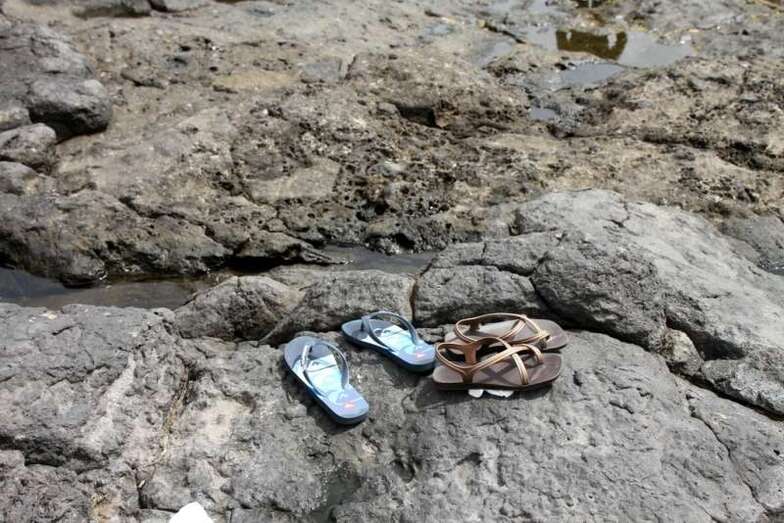 Un día gris con encanto, una mañana para tomarse un par de horas de descanso y mirar, observar y reflexionar sobre el pedazo de mar que tenemos bajo nuestros pies, asomados a los balcones, terrazas a lo largo de Taliarte, por ejemplo. Hasta el gris vestía nuestra costa de colores que tamizaban en la orilla las diferentes tonalidades que del fondo emergían hasta agarrarse a las rocas, veriles, piedras, viejos y erosionados depósitos magmáticos, que le daban a todas estas orillas una pincelada cromática especial, a pesar de la poca luminosidad y la poca incidencia de la luz solar, en esta encapotada y nebulosa mañana de fin de primavera canaria.