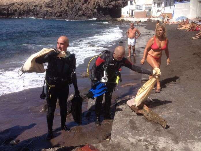 Telde.- Unos 30 kilos de residuos fueron extraídos este sábado de los fondos marinos de Tufia en la nueva campaña de limpieza llevada a cabo por miembros de los clubes de buceo Gran Azul, Henrisub y Timot, en una intervención promovida por la Concejalía de Playas, cuya titular, María González Calderín, acudió al acto. TA avanza imágenes de la actividad.