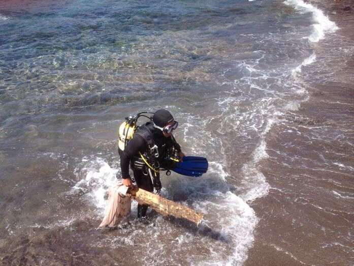 La campaña de limpieza extrae 30 kilos de residuos de los fondos marinos de Tufia