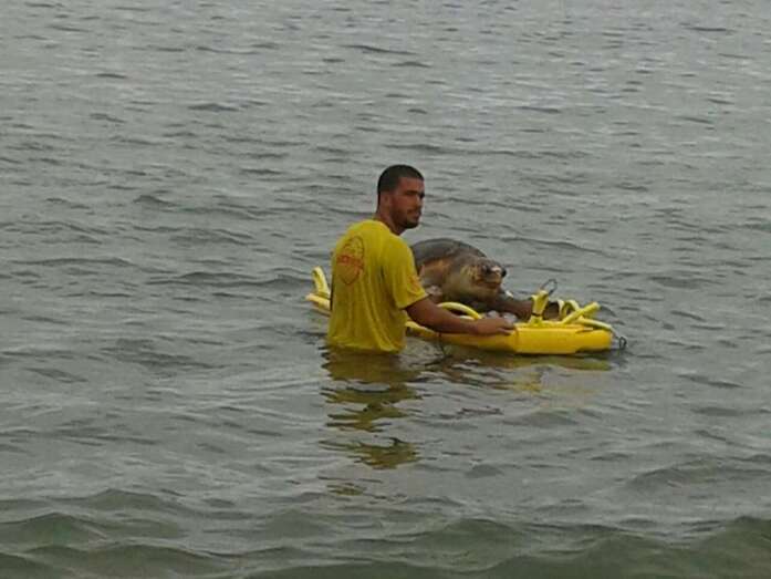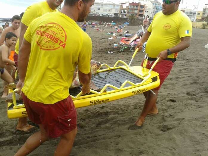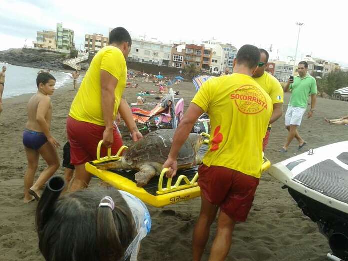 Telde.- Los bañistas y usuarios de la playa de Melenara se han llevado esta tarde, hace unos minutos, una sorpresa cuando los socorristas del servicio de salvamento municipal han localizado muerta a una tortuga marina de gran tamaño. Ante una gran expectación y con la ayuda de un flotador han sacado del agua a este ejemplar que presentaba diversas heridas y en avanzado estado de descomposición, según testigos presenciales..