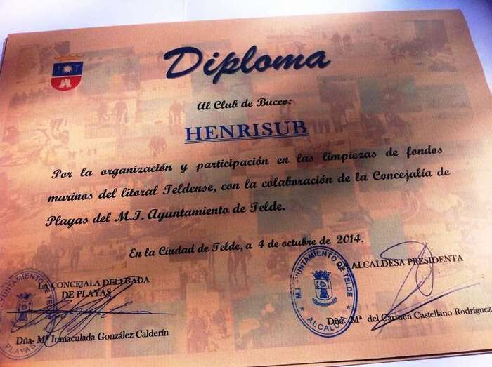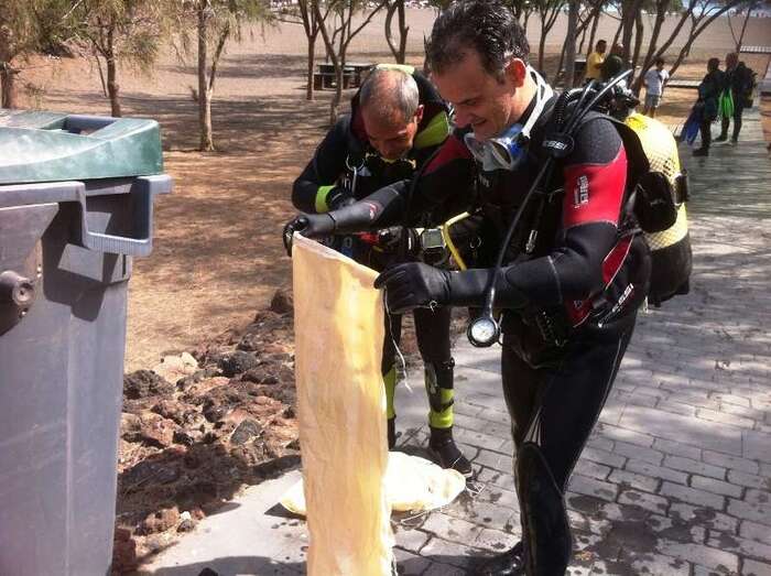 En la actividad que se desarrolló entre las 10.00 y 13.00 horas participaron unas 25 personas de los clubes de buceo de Telde, a los que el Ayuntamiento entregó diplomas acreditativos de su colaboración en la campaña de limpieza de los fondos marinos de las calas del municipio que llegó este sábado a su fin en la presente temporada.