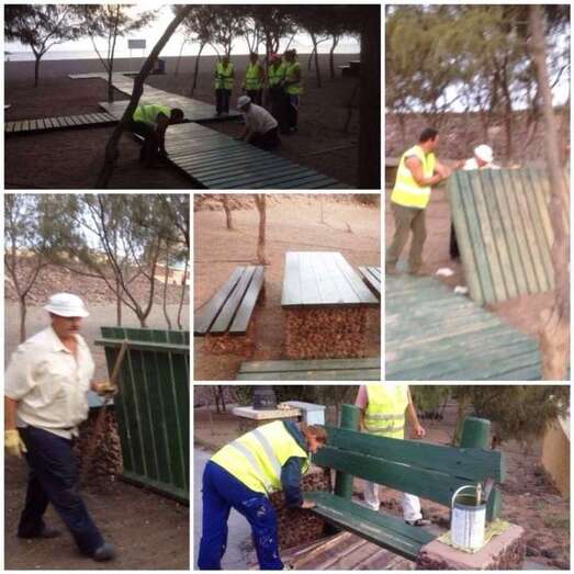La delegación que dirige la infatigable edila María González Calderín está procediendo al adecentamiento general del mobiliario urbano de este equipamiento con capacidad para 56 personas que comenzó a funcionar en agosto de 2013 en el extremo sur de la cala de Melenara en la zona ocupada por un pequeño bosquete de pinos marinos. En los trabajos se ha incluido también a los asientos ubicados en el paseo marítimo próximo.