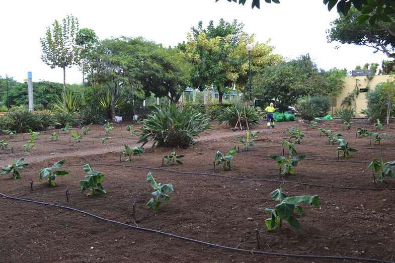 Un pequeño huerto urbano de unos 400 metros cuadrados y cuyos ejemplares se encontraban ya muy dañados e infectados por diferentes plagas, por lo que ha sido necesaria su sustitución por cien nuevos matos de la especie Brier. Unas plataneras que llegan desde la vecina Isla de Tenerife y que han sido germinadas in vitro, mejorando su resistencia y adaptabilidad al terreno, tal y como apunta uno de los especialistas de la empresa FCC, concesionaria del servicio de Parques y Jardines en Telde.