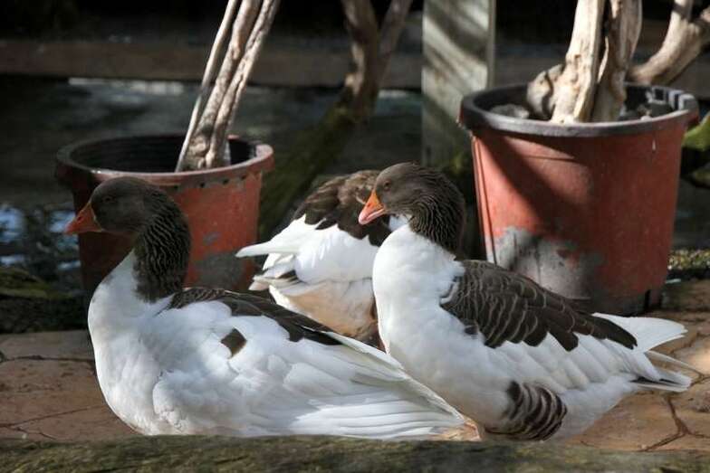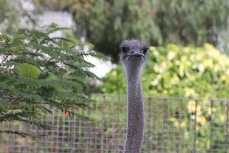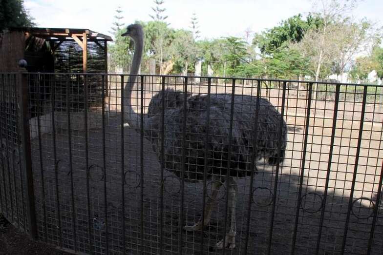 En el aviario destinado a la exhibición de algunas aves, patos, pavos reales, gallina de Guinea, reposan levantando sus cabezas, tras las espaciosas jaulas acristaladas, observan mis movimientos. Más allá en otro recinto, un avestruz eleva su cuello y mosqueado por mi presencia, muy pausado, se acerca a un palmo de la digital. En nuestro parque de San Juan el silencio se rompe por el lejano sonar de los vehículos que ruedan por los alrededores de la circunvalación y calles aledañas, mientras el aire y la humedad ambiente refresca la piel de los escasos deportistas y paseantes que a esa hora ya cercana al almuerzo vuelven sobre sus pasos. El cielo se torna más oscuro de nubes amenazantes que traen agua, las previsiones meteorológicas se presentan adversas en los próximos días.