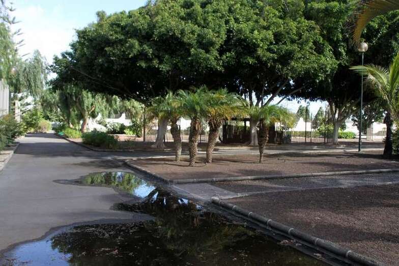 Mientras tanto en la calma, la paz transmitida de los que al otro lado del cementerio descansan en la paz eterna, sobre el sosiego y frescor de los verdes parterres, grandes espacios de césped colmatados de aguas, charcos en sombras bajo las arboledas, palmerales, cactus, dragos, y un sinfín de plantas típicas, endémicas de nuestros jardines, otras importadas con el tiempo perfectamente aclimatadas y en su ambiente natural idóneo para dar el aspecto, la pincelada y, cómo no, el colorido a este pulmón de Telde, uno de los espacios naturales con los que afortunadamente contamos.