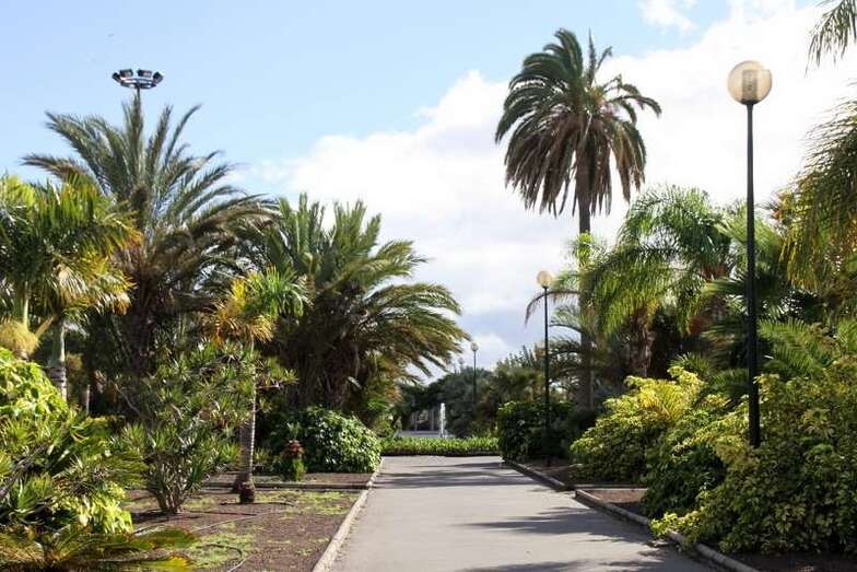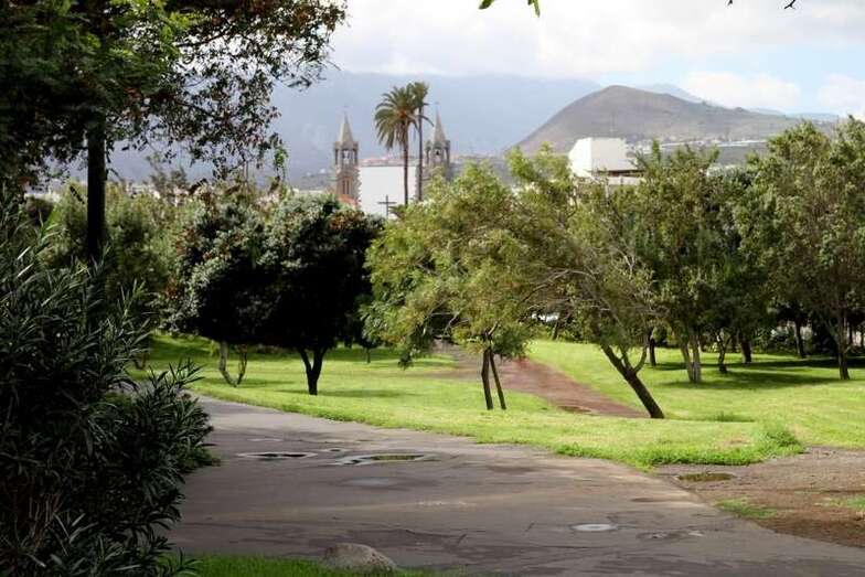 Plantas, parterres, pasillos, accesos de entradas y salidas con diversos escenarios de esta zona de la ciudad que presentan un buen reclamo artístico para el encuentro con el arte que en perfecta simbiosis, plantas e ingenio creativo humano, se dan la mano. Esculturas maestras de la serie dedicada a la Magia de la Naturaleza, abstracciones escultóricas realizadas por el artista Plácido Fleitas. En la rotonda, la escultura Atlas de Salvador Silva, y lateral de la autovía con acceso al cementerio de San Juan. Desde la puerta principal al parque se muestra en un plano general, el conjunto gótico mudéjar del edificio posterior de la Basílica de San Juan Bautista. Desde esta entrada se sitúan las esculturas en acero cortén y hormigón, de la serie Parejas, de Mauricio Romero García. Bajo la arboleda lateral del espacio destinado a los juegos infantiles, las esculturas dedicadas a Iqbal Masih, del escultor Pablo Luis Tejada.