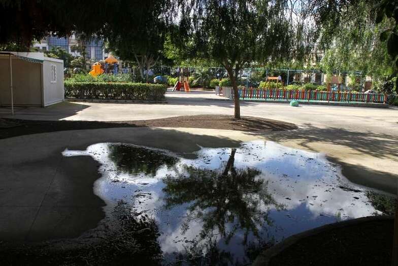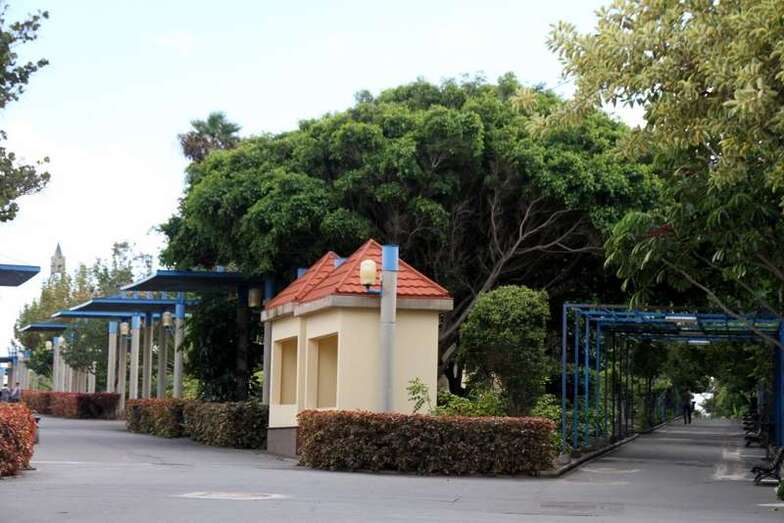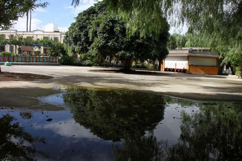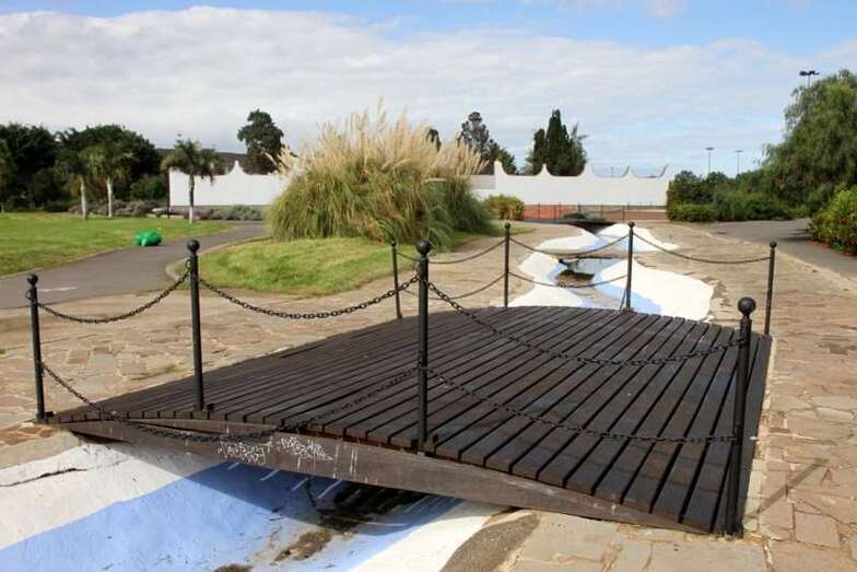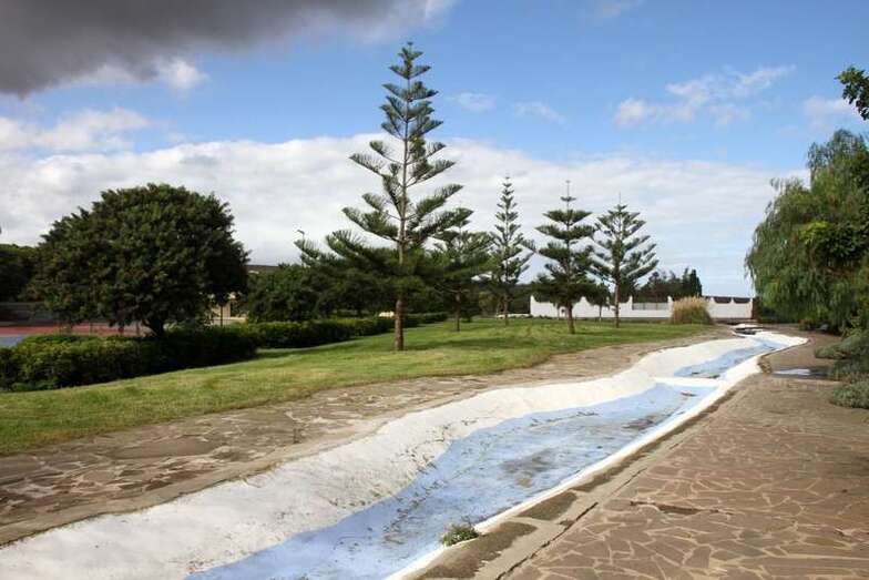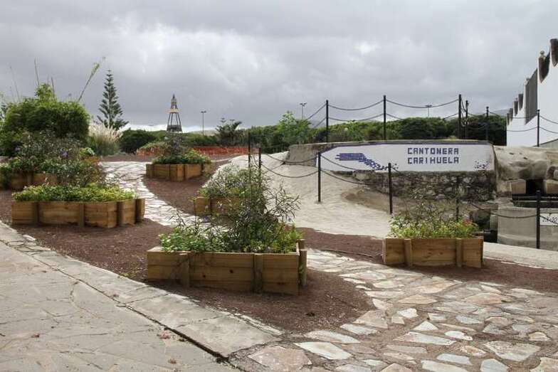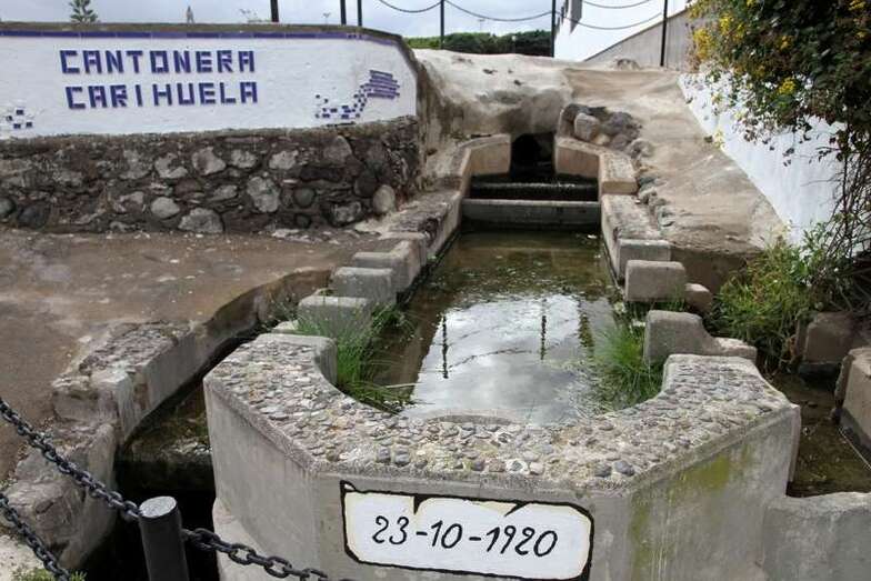 Bajo los paseos que circundan el parque los troncos de las enredaderas, en caprichosas ondulaciones se contonean y suben agarrados a los contrafuertes de los tupidos techos de ramaje que se han ido formando con el tiempo dando sombra a todo el recorrido. La Cantonera Carihuela detrás del muro norte del camposanto, con fecha inscrita de 23.10.1920, muestra la parte principal de reparto de aguas, madre cantonera de los entresijos y sistemas de riego que en otro tiempo, desde aquí, repartían el oro líquido por los cercados de estas zonas cuando los terrenos que hoy ocupa este parque eran zonas de cultivo que daban, ponían el tono de las labores que los agricultores de la época, extendiendo los matices de tonalidades verdes hasta la misma costa.