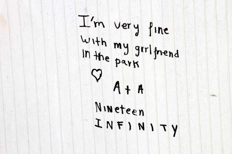 Sobre la dura piel de algunos troncos o sobre el corazón anillado por el tiempo de la gruesa, robusta rama cortada, como testimonio ante el amarillento pergamino vacío de la página del libro de una vida, no podía faltar la firma y seña de quien en ese instante la llenó de un romántico compromiso, el grafiti escrito, rotulado, de un I love you, algún, hoy, mañana y siempre, o en un inicial inglés lectivo y sentimental, con cierto sabor a lírica de temas musicales del rock de los años sesenta: I´m very fine with my girl friend in the park. Yo, también estaba a gusto en el parque, pero, en ese momento, sin mi chica. De otra manera y menos lírica, algún desaprensivo en una ignorante e incívica acción reprobable, estampó también su llamativa firma sobre una de las esculturas del Jardín de las Hespérides.