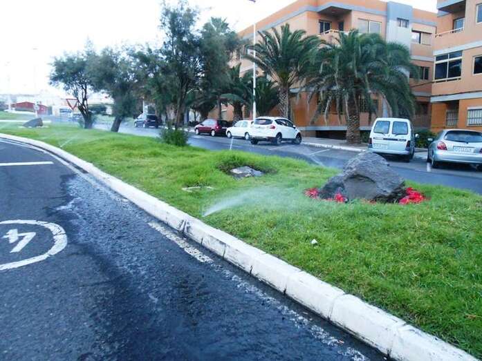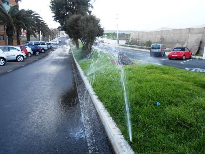 Según ha podido saber TELDEACTUALIDAD, se trata de la rotura de un aspersor, por lo que el incidente ha sido solucionado durante esta misma mañana. El responsable de Parques y Jardines, Mario Torres, se puso en contacto con la empresa adjudicataria para conocer los motivos y le han informado que el problema está resuelto.