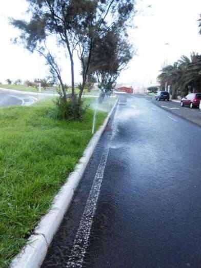 Telde.- Cientos de litros de agua se despilfarraron esta mañana en la vía de acceso a Salinetas desde Melenara debido al mal funcionamiento de los aspersores que riegan de forma automática el espacio ajardinado central que divide los sentidos de circulación del primer tramo de la Avenida de Américo Vespucio. El problema fue solucionado a lo largo de la mañana. TA ofrece reportaje gráfico.