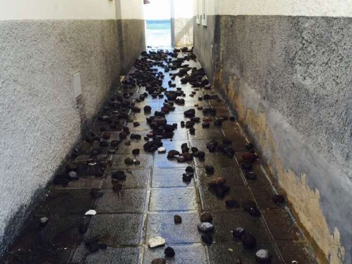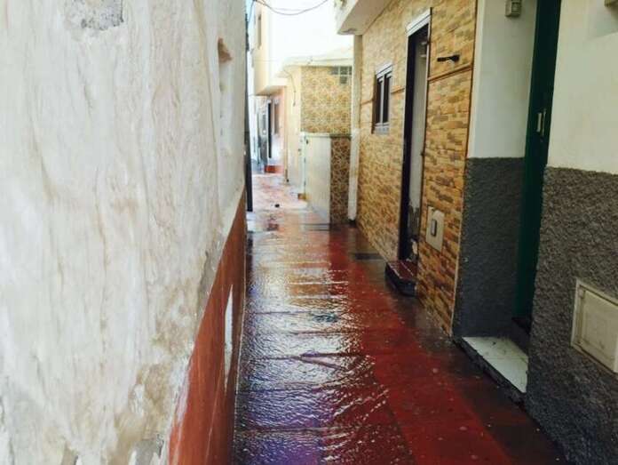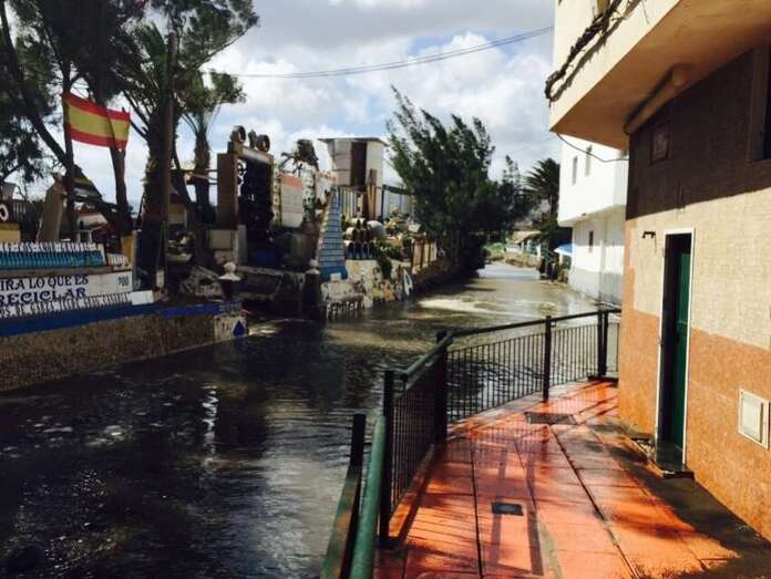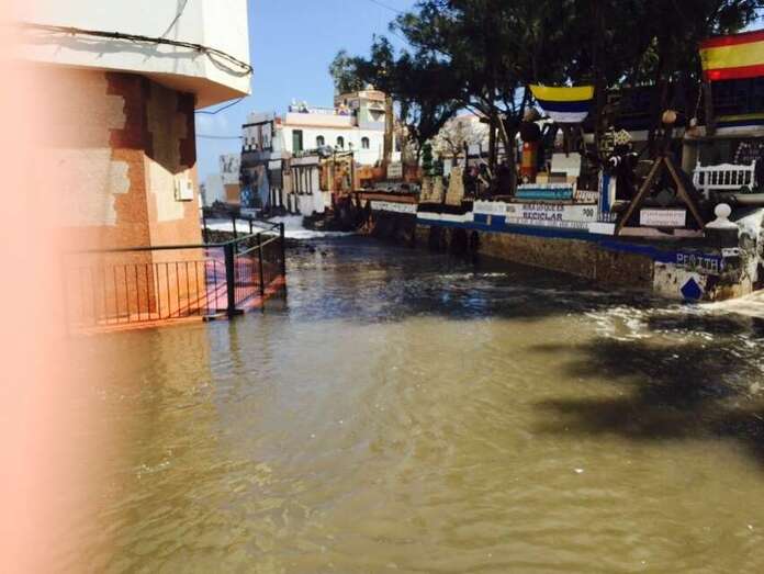 El temporal ha provocado algunos destrozos en el poblado costero, donde el agua ha penetrado en las casas y callejones y ha llegado hasta la carretera ubicada entre los invernaderos y la línea de viviendas. También ha entrado por el tramo bajo del barranco que divide el barrio en dos.