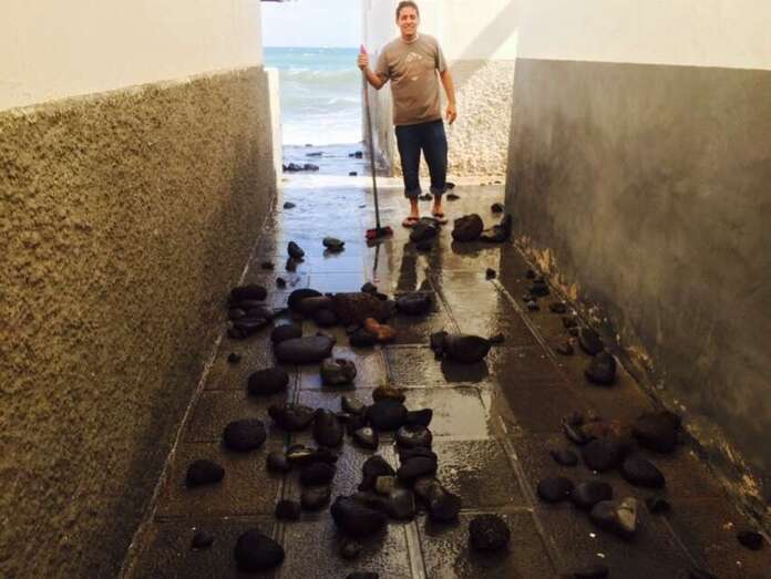 La concejala de Playas, María González Calderín, que se ha desplazado hasta Ojos de Garza para conocer de cerca los efectos del temporal, ha señalado a TELDEACTUALIDAD que, por lo visto, los destrozos no han sido importantes.