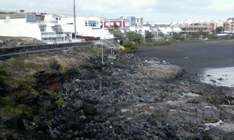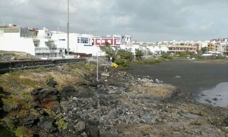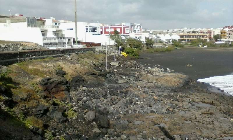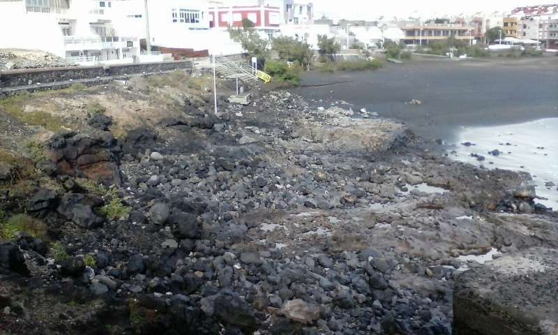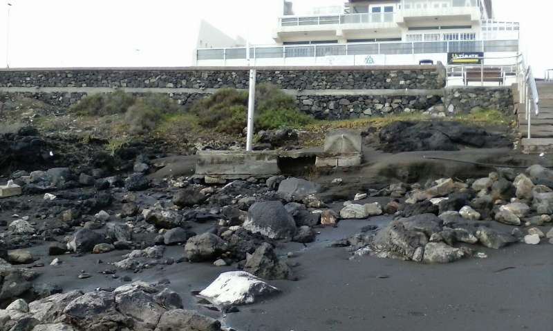 Telde.- El temporal de mar que estos días azota la costa de Telde ha dejado casi sin arena a la playa de La Garita. La mitad de la cala ha quedado con las rocas al descubierto. La fuerza de las olas también ha provocado destrozos en las duchas y los lavapies.