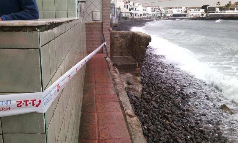 Desde la Concejalía de Protección Civil, que dirige Héctor Suárez, se ha atendido la demanda de los vecinos de señalizar las caídas a nivel que deja el temporal en esta playa, donde ha ocasionado daños a aceras, muros y calles. Voluntarios de Protección Civil vigila y se mantiene en alerta hasta el fin del temporal que esta afectando a esta cala teldense, situada al sur del municipio.