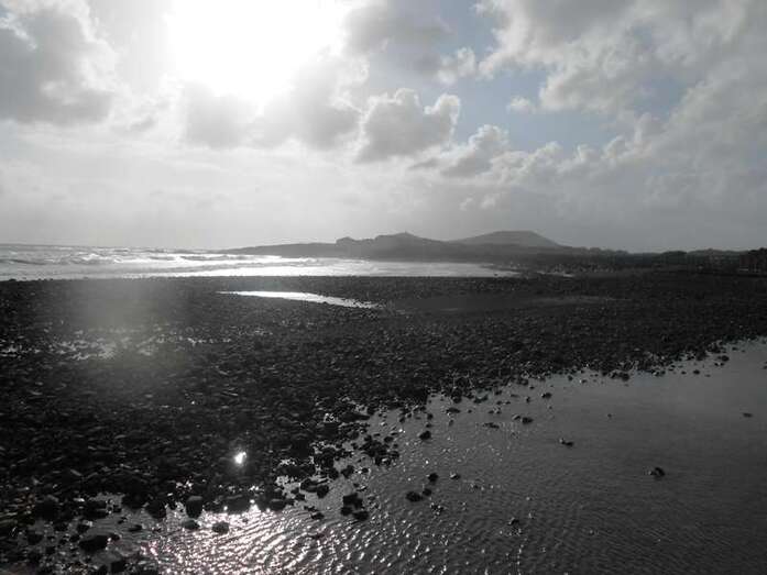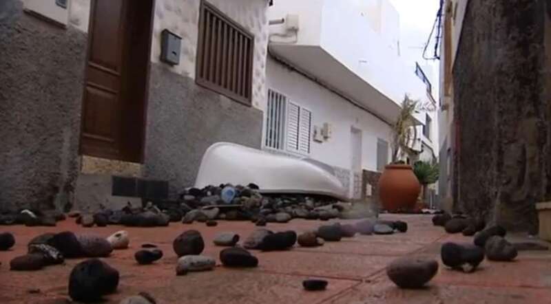 Telde.- Operarios del servicio de limpieza del Auntamiento de Telde y sobre todo los vecinos del barrio de Ojos de Garza llevan todo el día trabajando para limpiar las calles y sus casa de piedras que el mar arrastró la pasada noche.