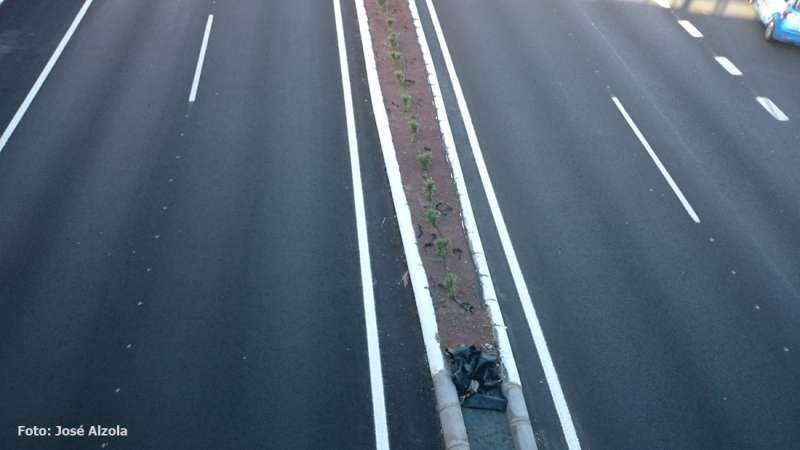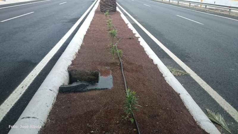 No obstante, siendo justos hay que decir que ‘al Cesar lo que es del Cesar’. El señor concejal no tiene porqué ser un experto en jardinería, a pesar de tener conocimientos de agricultura, como se recoge en su vídeo promocional (como candidato a la alcaldía). Se entiende que para eso tiene a los técnicos, tanto municipales como los de la empresa concesionaria FCC, que todo sea dicho, es todo un lujo poder contar con 4 técnicos, alguno de ellos con grado superior, independientemente que también se disponga de otros cuatro capataces y un encargado en nómina, por lo que resulta difícil entender, como es que nadie se percató de las condiciones negativas de la tierra, no apta para ningún tipo de plantación, bastaba con solicitar un estudio del estado de la misma, hubiese sido más rápido, más barato y su hubiesen ahorrado un gran despilfarro, que es en lo que se convertirá cuando haya que retirar esas 3000 plantas. Es más, la prueba de lo que aquí se expone, se encuentra en la misma autovía del Cabildo, y las imágenes así lo demuestran.