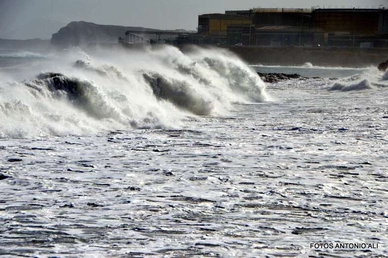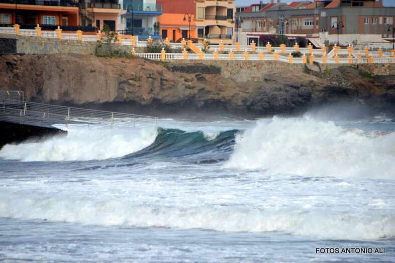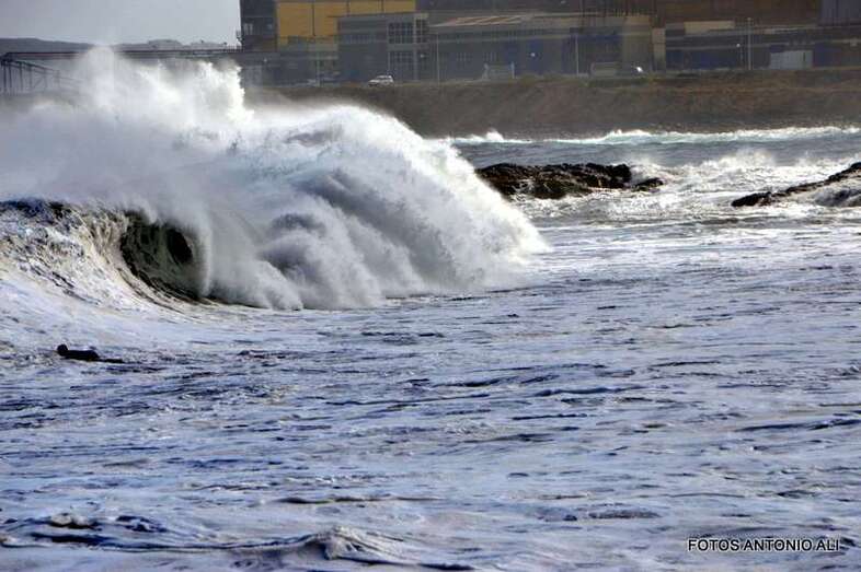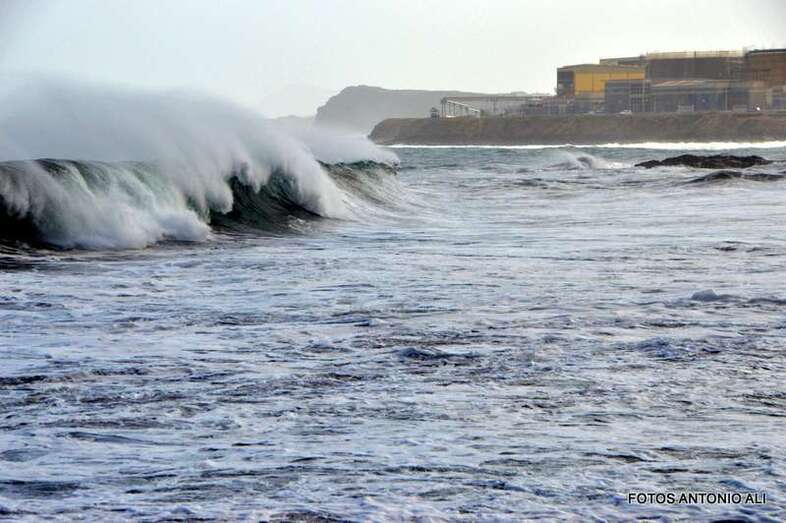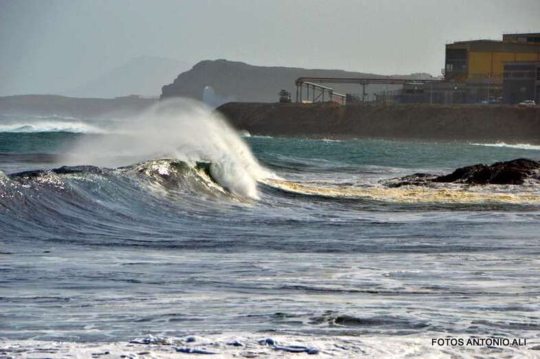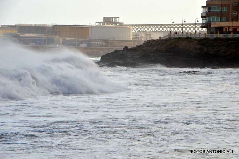 Imagen de las olas impactando este miércoles contra la costa de Telde (Foto TA) Imagen de las olas impactando este miércoles contra la costa de Telde (Foto TA)