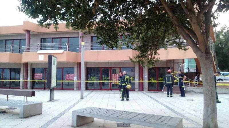 Telde.- Los bomberos han tenido que intervenir para delimitar el espacio del edificio comercial, en desuso, que da fachada a la avenida marítima de La Garita ante la caída de cascotes. TA ofrece imágenes.