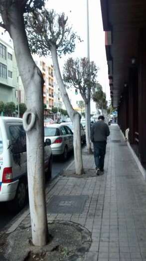 Así ha venido sucediendo en lugares tan emblemáticos como la calle León y Castillo, Luis Doreste Silva, Profesor Francisco Cruz y tantos otros lugares de Telde. Además de ello, se ha procedido continuamente y en las peores fechas del año a la realización de podas completamente innecesarias que además son hechas sin respetar las técnicas más elementales de jardinería: eliminación únicamente de ramas secas o que obstaculicen el tránsito, tratamiento de las superficies cortadas para evitar que el árbol o palmera sea posteriormente infectado por cualquiera de las plagas ya detectadas, etc.