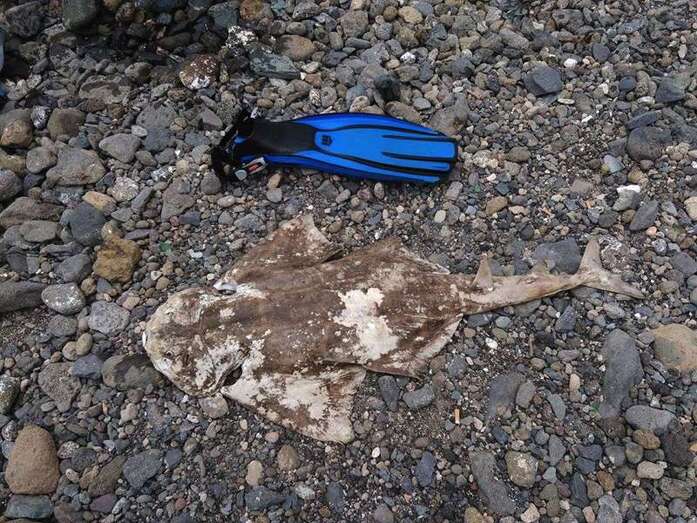 Telde.- Buceadores de la Asociación de Amigos de los Tiburones y las Rayas (Atiracan) acaban de recuperar del mar el cadáver de un angelote (squatina squatina) en Telde, en la cala de Taliarte.