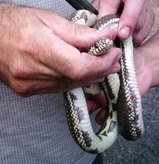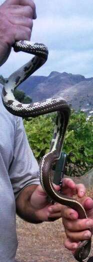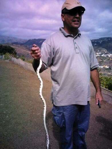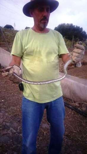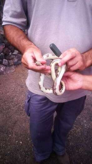 Telde.- Cinco ejemplares de la serpiente rey de California albina han sido capturados en los últimos días en la Finca del Viso que gestiona en el Ayuntamiento de Telde en el sector de Montaña Las Palmas. TA ofrece imágenes