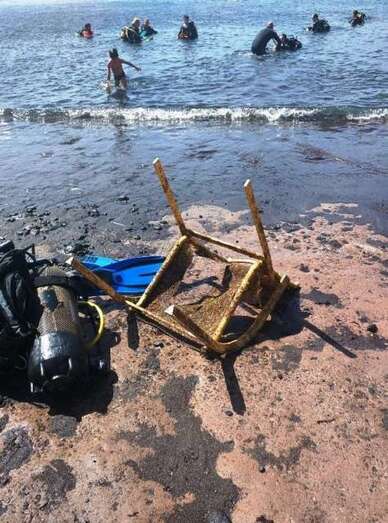 Telde.- Unos 15 kilos de basura, compuesta por una silla, hierros, plástico, botellas y latas, fueron extraídos este sábado de los fondos marinos de la playa de Tufia por el equipo de 15 personas que participaron en la limpieza organizada por clubes de buceo del municipio en el marco de la campaña veraniega Súbete a la Ola de la Vida.