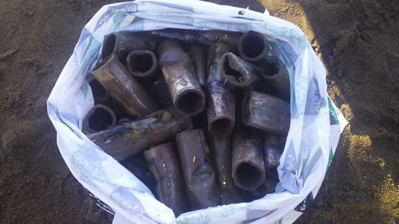 Telde.- Bañistas de la playa de Melenara han alertado de la presencia en los fondos marinos de carcasas de voladores soportes y otras útiles procedentes del multitudinario espectáculo pirotécnico celebrado en la noche del pasado sábado. Restos de cartón recubiertos de plásticos y localizados fundamentalmente en la zona del de la escultura de Neptuno y en el centro de la cala a la altura del canal a nado que están siendo retirados por los propios usuarios y también por personal del Ayuntamiento de Telde.