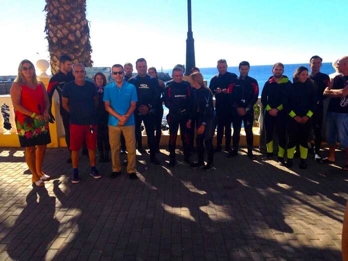 La inmersión se inició después de guardar un minuto de silencio en recuerdo del buceador Jorge Betancor Hernández, fallecido en un triste accidente el pasado mes de julio en Arinaga.