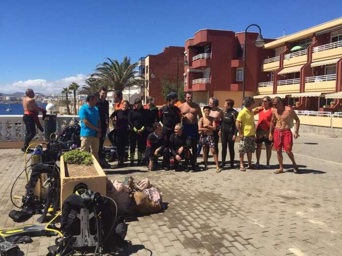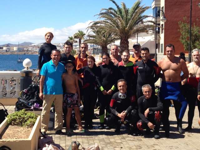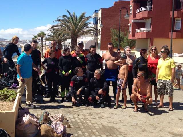 Los submarinistas contaron con la colaboración del área de Playas y Medio Ambiente del Ayuntamiento de Telde, cuyo responsable, el concejal Álvaro Monzón, al igual que la ex edila María González Calderín, madrina de Henrisub, acudió ha mostrar su apoyo a los participantes en dicha iniciativa.