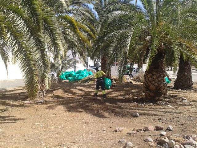 Parques y Jardines limpia el palmeral-dragonal José Tejera de Jinámar