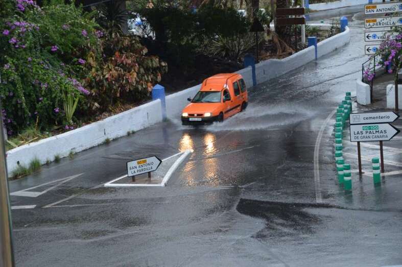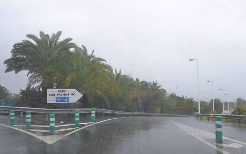 Desde la  Policía Local de Telde se pedía precaución en la incorporación de la GC-1 hacia Telde (GC-10) hay grandes charcos, así como también en la zona cercana a El Hornillo (GC-10).